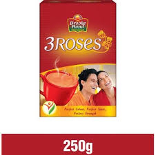 Since 1869, Brooke Bond has brought you the perfect tasting tea experience with the best-chosen leaves from Assam. Brooke Bond has launched 3 Roses, one of Indias most preferred tea brands today. Brooke Bond 3 Roses since then has changed the way people drink tea. In earlier times, tea was consumed for refreshment or just as a habit. Brooke Bond 3 Roses introduced Indias Tea as the most favourite hot beverage promising you - A Perfect cup of tea. Brooke Bond 3 Roses talented expertise gives you rich colour, irresistible taste and correct strength by perfectly blending three different tea leaves. When the three come together it is just perfect! It is so tasty that one cup of tea will never be enough because it has perfect Colour Taste and Strength. The Perfect Brew for Healthy and Playful MischiefA cup of Brooke Bond 3 Roses Tea is not just tasty but also healthy. Every cup of 3 Roses Tea contains special tea Leaves with natural flavonoids that help improve blood circulation which is good for your family's health. These healthy flavonoids give 3 roses tea its perfect colour taste and strength. It's full of health and full of life. Its unmatched taste ignites playful mischief in the relationship. Healthier brew with Refreshing taste. It is an irresistibly good relationship brew!