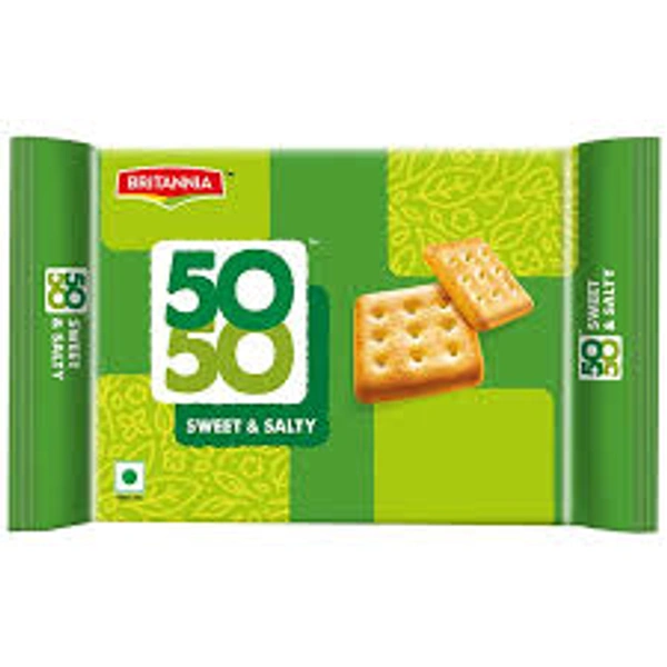 Britannia 50-50 Sweet & Salty Biscuits are prepared with the goodness of two completely distinct flavours blended together. Britannia biscuits, cookies, cakes and rusk are a perfect companion for your tea. Believing in delivering fresh and healthy products, Britannia India manufactures some of India's favourite brands like Good Day, Tiger, NutriChoice, Bourbon, Milk Bikis and Marie Gold