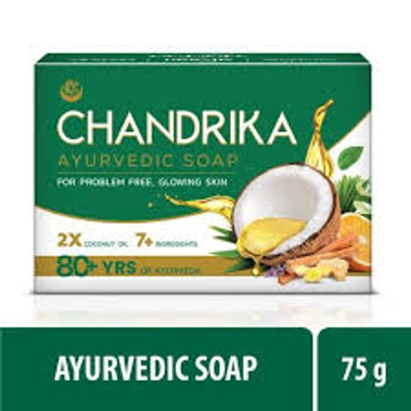 Experience the authentic goodness of Ayurveda with the classic Chandrika Ayurvedic Soap, handmade with natural ingredients that do more than just cleanse your skin. With its 80 years of wisdom, Chandrika has made this soap bar using ayurvedic herbs soaked in double* the amount of pure Coconut oil. With the goodness of Ayurveda’s best-kept skin secrets, this bathing bar soap helps ensure total skin care. It has an abundance of coconut oil, 2x the amount in leading soaps with natural ingredients. Coconut’s skincare capabilities are endless! It soothes the skin, reducing outbreaks and irritation. Rich in antioxidants and Vitamin E, coconut oil helps slow skin ageing, making your skin soft, supple, and radiant. It also has Patchouli Oil, your skin's best friend, for its antifungal, antiseptic, and anti-inflammatory properties. Finally, the sweet-scented sandalwood extract helps cool the body, tone the skin, and enliven dehydrated skin with its moisturising properties. The result – Clear, Blemish-free skin, naturally! Try the healthy and happy skin secret today!