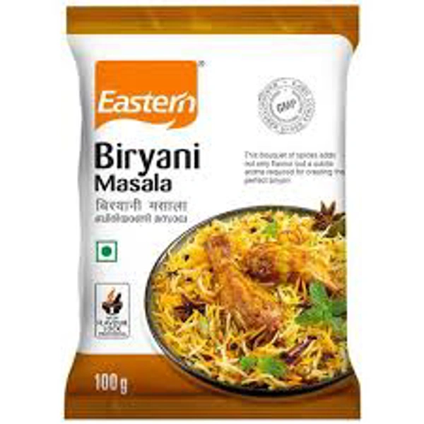 Upgrade your kitchen with Eastern’s Biryani Masala and enhance your meals with the zing of freshly sourced spices. Eastern has been well known for straight and blended spice mixes. To add an exciting element to your daily food, add a dash of Eastern Biryani Masala and elevate your dish, giving it the Perfect colour and taste! The meal will be elevated by the addition of Eastern’s flavorful Biryani Masala. It is a spice blend that'll have you licking your fingertips! Explore Eastern's range of Perfectly curated straight and blended spices - Eastern Chilli Powder, Eastern Turmeric Powder, Eastern Coriander Powder, Eastern Kashmiri Chilli Powder, Eastern Garam Masala, Eastern Meat Masala, Eastern Sambar Powder, Eastern Chicken Masala, Eastern Biriyani Masala Powder, Eastern Fish Masala, Eastern Kabab Masala, Eastern Rasam Powder, and many more