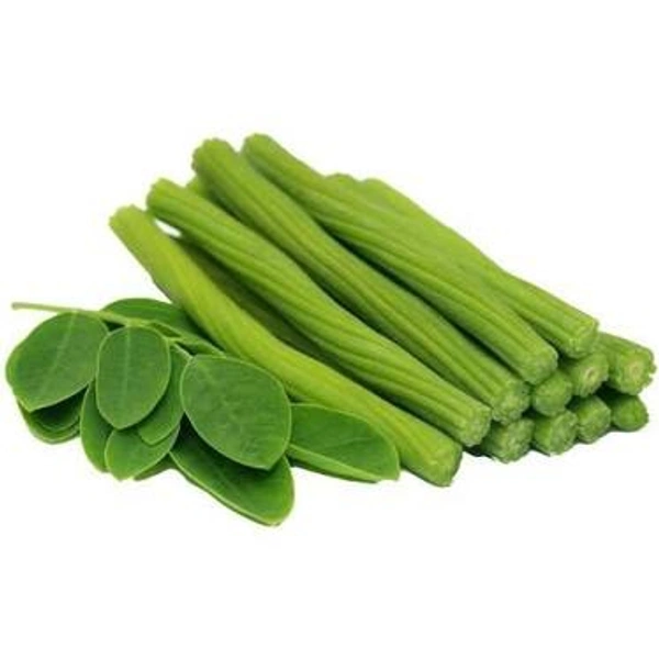 Drumsticks have long, dark green bumpy pods running along the length and fleshy pulp inside the pod encasing each seed.