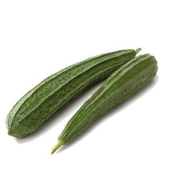 Ridge Gourds are long vegetables with a ridged dark green skin and white spongy flesh that contains numerous seeds inside.