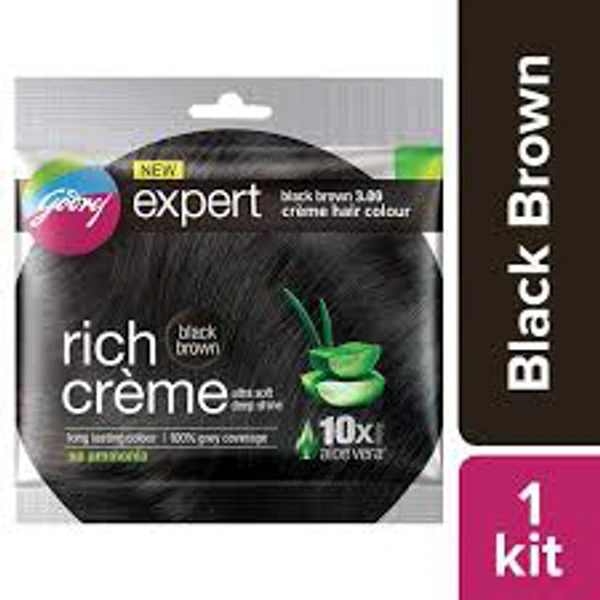 Godrej Expert Rich Creme Hair Colour - Single Use Long Lasting 100% Grey Coverage(20g+20ml) Shade 3 Black Brown 1Pc