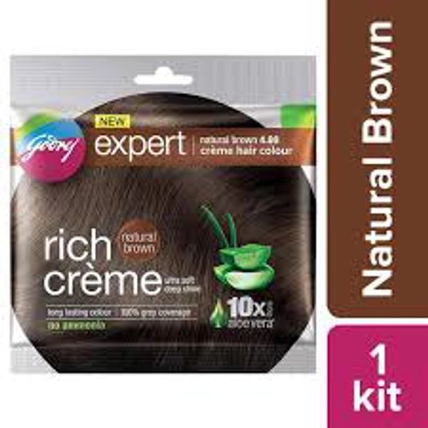 Godrej Expert Rich Creme Hair Colour - Single Use Long Lasting 100% Grey Coverage(20g+20ml) Shade 4 Natural Brown 1Pc