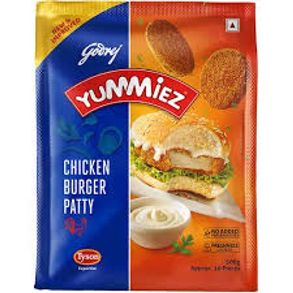 Godrej Yummiez Chicken Burger Patty is perfect to enjoy lip-smacking burgers at home! Now make delicious sloppy joes and home without any effort with this patty which is all about luscious chicken which is full of all the right nutrients. Enjoy taste and health with this yummy treat. This Yummiez Chicken Burger Patty is easy to prepare and even easier to devour! It is crispy on the outside and tender on the inside - exactly how you like it. This Godrej Yummiez range is made from the best quality, hand-picked ingredients for exceptional taste and flavour. Super easy to make and the ideal hunger fix for evenings after work or school, this pack is a seamless choice for busy days or when you have guests over