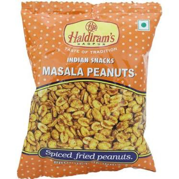 Haldrirams Masala Peanuts make a delightfully healthy and delicious snack. Excellent snack for anytime of the day and is ideal for everyone. They are crunchy and tasty and you can save it for weeks. These can also be added to salads or any other dish to enhance the taste. It has a delectable flavour and texture. These peanuts are roasted with salt and spices. It is a very good source of monounsaturated fats. Its so tasty that you can't stop eating it all day long. It makes a good tea time snacks, when you want to munch something