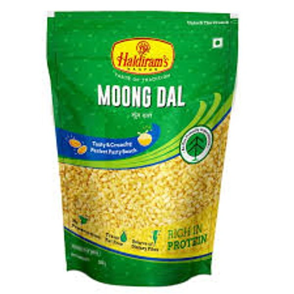 Haldirams Moong Dal is split moong beans that are fried. It is a great fried snack that is toasted with salt. This namkeen is a very light snack and tastes great. It is a savoury snack that is popular all over India. It is crispy, crunchy and very flavourful. This dal contains fibre, potassium and magnesium. Its so tasty that you can't stop eating it all day long. It makes a good tea time snacks, when you want to munch something. This is healthy and nutritious snack which is high in protein