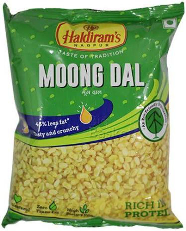 Haldirams Moong Dal is split moong beans that are fried. It is a great fried snack that is toasted with salt. This namkeen is a very light snack and tastes great. It is a savoury snack that is popular all over India. It is crispy, crunchy and very flavourful. This dal contains fibre, potassium and magnesium. Its so tasty that you can't stop eating it all day long. It makes a good tea time snacks, when you want to munch something. This is healthy and nutritious snack which is high in protein