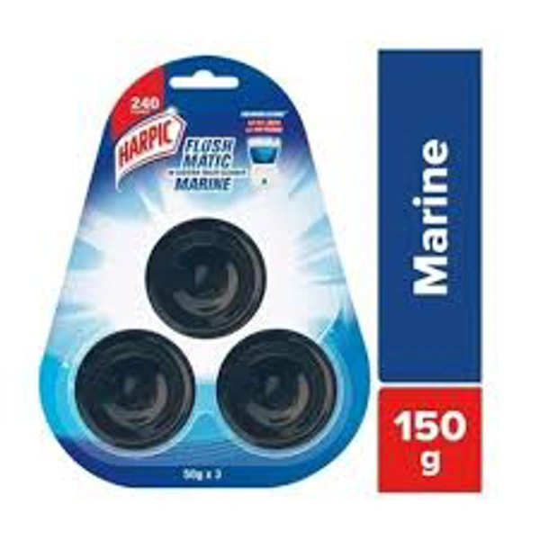 Harpic Flushmatic toilet cleaning cistern block is a drop-in tank tablet which can be used for any accessible cistern. It works by creating strong foam every time you flush the toilet, which helps to maintain cleanliness in the toilet bowl. Harpic Flushmatic toilet cleaner works from inside the cistern to release a dose of powerful detergent with every flush. Distributing the liquid across the bowl, it helps you maintain a hygienic and fresh toilet and prevents the build-up of stains giving you a continuous clean toilet. You need not remove the pleated cloth wrapper on the block as this will dissolve in the water till it finishes, just drop the block directly into the cistern. For best results drop it at the opposite end to the water inlet, by the float. Wait for 10 minutes to let the block mix, before the first flush. Harpic Flushmatic toilet cistern block is a toilet hygiene product for continuous cleaning without any mess. It is touch free and hygienic and dissolves completely when finished. A single block lasts up to a month depending upon individual usage. Also, it lets you know when it needs replacing as the colour of the flushed water starts to fade. To keep the freshness going replace it with a new Flushmatic block as soon as the colour starts to fade. Harpic Flushmatic toilet cleaner is safe to be used with septic tanks and all other toilet cleaners. For regular cleaning, use Harpic liquid. With the new improved formula, now each block lasts upto 240 flushes.