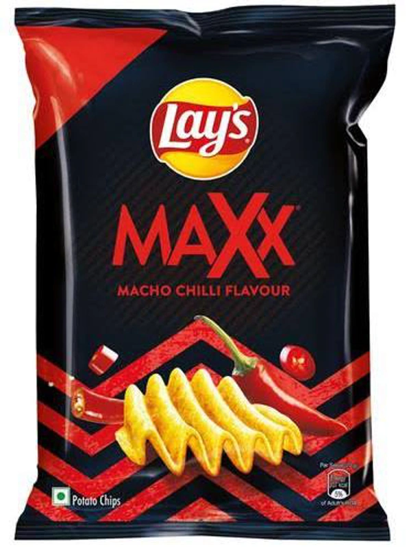 Get your snacking on with Lay’s Maxx Macho Chilli Flavour! The zig-zag deep ridges give Lay's Maxx maximum crunch & flavour. Enriched with macho chilli seasoning, every crunchy bite is guaranteed to transport you to a world of MAXX intensity. Grab a bag of Lay’s Maxx Macho Chilli chips and indulge in MAXX crunch and MAXX taste. Made from the highest quality farm-grown potatoes, every chip contains delectable flavours that will ignite your tastebuds. What are you waiting for? Grab a bag of Lay’s Maxx Macho Chilli to accompany you on your binge-watching sprees, build the mood for house parties, or satisfy your mid-morning hunger or late-night snack cravings!