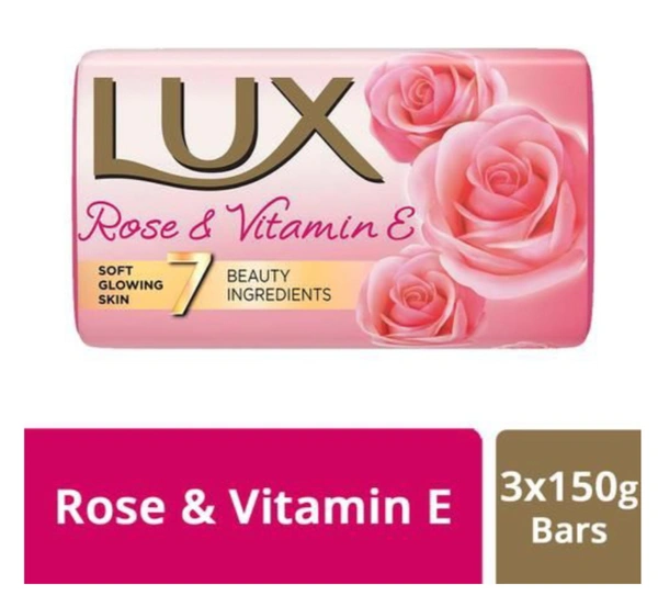 Lux Rose & Vitamin E Soap Bar For Soft Glowing Skin With 7 Beauty Ingredients 150g(Pack Of 3)