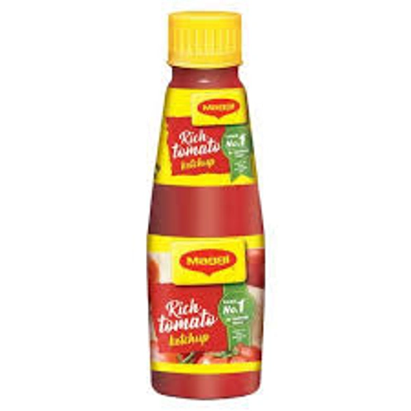 Maggi's delicious Rich Tomato Ketchup adds a tang to any dish with its unique taste. The hero to your snacks and the best accompaniment to a boring meal. Nestle Maggi Ketchup assures you everything from samosas, noodles and pakodas to plain chapatis is perfect and yummy. Nestle Maggi Tomato Ketchup is made with tomatoes and a combination of spices to create a truly lip-smacking flavour that everyone loves. Great with snacks like burgers, fries, pizza, pasta and more. Nestle Maggi Tomato Ketchup is fresh and healthy.