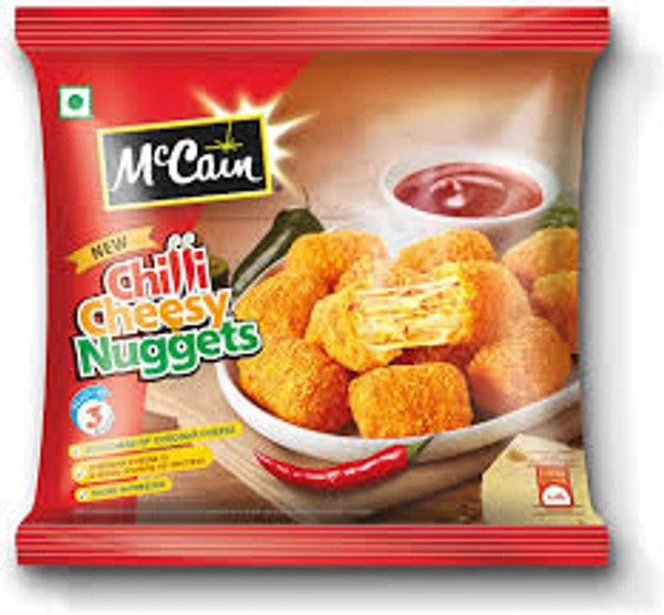 McCain Chilli Cheesy Nuggets are delicious snacks that are hot and crisp on the outside yet have a soft, melting cheese filling with a flavourful hit of red chilli flakes. Chilli Cheesy Nuggets is the only product that contains Natural Cheddar Cheese which is a good source of protein that too 28% of it.