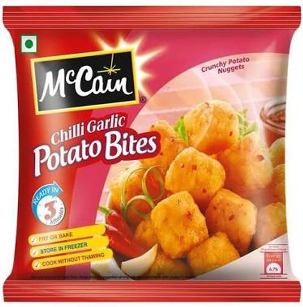 McCain Chilli Garlic Potato Bites are the finest satisfying stuffs to delight you with the peppery blend of Chilli, Potatoes and Garlic. The wholesome and yummy bites will raise your tang buds. They are the light, golden bites that add nutrition and flavour to the family meals time after time. Indulge yourself within the fresh and genuine flavour of potato bites engrossing with spicy, syrupy and bitter ingredients.