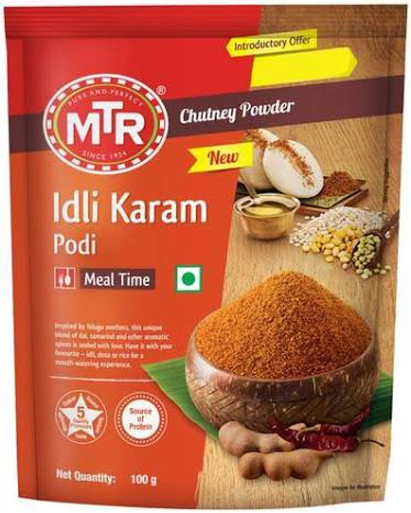 MTR Idli Karam Podi is a delicious chutney powder that can be used alongside rice, Idlis, or Dosas. The chutney powder is inspired by the state of Telugu states and its moms. It is a traditional preparation that has a unique blend of dal, tamarind, and spices which are added in particular proportions to make it a great combination to go with various foods. Add it to your favourite steaming hot food item along with a bit of ghee to feel all the flavours filling your mouth. Explore the huge range of products in various categories from MTR available only on BigBasket.