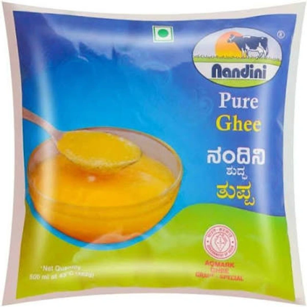 Nandini Pure Ghee, made from cows milk by adopting traditional procedures and meeting stringent quality standards. A taste of purity. This Special Grade Agmark ghee is quality assured to make foods, sweet dishes, Kheers and sweets flavoursome and mouth watering