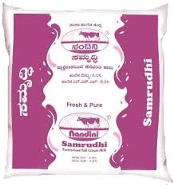 Milk is a good source of calcium and protein. It is rich in essentials vitamins like D and B12. It helps in strengthening the bone health and teeth. Samrudhi Milk from Nandini is full cream pasteurised milk