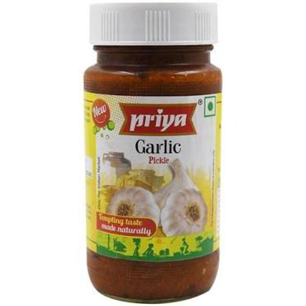 Priya's Garlic Pickle is a great combination of mild Indian baby garlic with chilli and authentic spices. It is a very tangy and spicy taste. This Garlic Pickles are made of delicious shredded garlic in oil. Zest up your meal with this mouth-watering pickle. Priya’s Garlic Pickle is yet another novel indulgence made out of an otherwise indispensable ingredient of the Indian kitchen – Garlic. The aroma is finely captured and made into a pickle to give even the best of sauces and ketchup a run for money because Priya’s Garlic Pickle forms the most delightful accompaniment for any of the so-called fast foods.