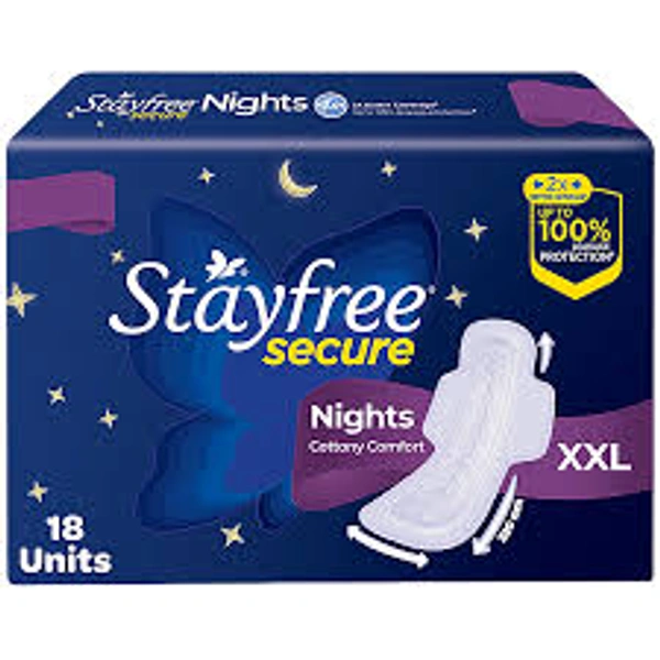 Fear of staining not letting you sleep well? Trying to not move in your sleep so that your pad doesn’t leak from the back or the sides? Tried a million things but still get that leak at the back while sleeping?? Now sleep worry-free with Stayfree Secure Nights with Leak Lock technology which provides up to 100% leakage protection all through the night. The “NEW Stayfree Secure Nights” has an extra-long length (320mm) and wider back that provides 2X better coverage vs any regular pad and prevents leakage from the back and sides no matter how you sleep. So get the sleep you so deserve with the “Stayfree Secure Nights”