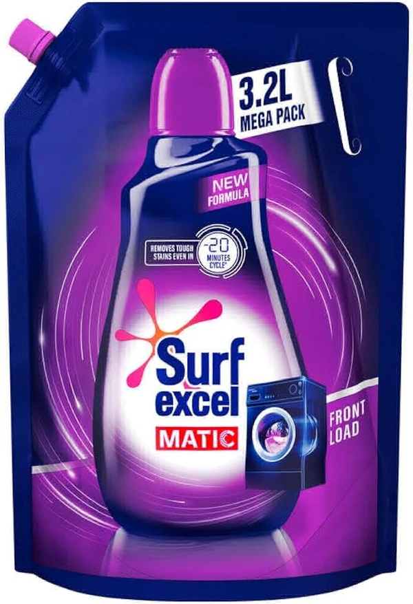 Presenting Surf Excel Matic Front Load liquid detergent - a revolutionary liquid detergent to deliver the best laundry experience in front load washing machines. Surf Excel Matic Front Load liquid detergent is specially made for your front load washing machine and gives you tough stain removal in the machine itself. Surf Excel Matic Front Load liquid detergent is effective in the water level of your front load washing machine and dissolves completely ensuring it leaves no residue in your machine or your clothes. As a liquid detergent, its cleaning action and superior fragrance deliver a great wash experience. Surf Excel Matic Liquid with powerful cleaning technology penetrates stains faster and delivers a better clean in the washing machine compared to your handwash detergent. The multi-layer deep penetration formula works in partnership with the machine to remove tough stains in the machine itself. Try Surf Excel Matic Front Load liquid detergent for your front load machine for a delightful laundry experience This Surf Excel Matic Liquid detergent pouch 3.2 L pack is a refill pack and the liquid in the pouch needs to be poured into an empty 1 ltr Surf Matic liquid detergent bottle. . Every Stain is a sign of learning and growing, Surf Excel| Dirt is Good