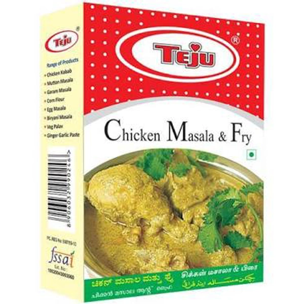 Teju Chicken Masala Powder is a mix of aromatic and flavourful spices. Our chicken masala adds a unique flavour to your dishes. It's the most magical and extraordinary mix of spices that is used mostly in Indian cuisine. It is slightly spicy and has an earthy flavour to it. This masala pairs perfectly with the chicken making it delightful. The cloves, cinnamon and peppercorns used in this mix are known to improve digestive complaints and immune functions. It is added to any chicken curry which makes it highly delicious