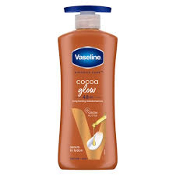 With daily exposure to environmental triggers, the skins natural moisture barrier can break down, allowing water to escape the skin. Vaseline Intensive Care Cocoa Glow Lotion contains Micro-droplets of Vaseline Jelly that locks in moisture within the skin to allow the skins natural barrier to recover. Get Healthy, glowing skin with our Vaseline Intensive Care Cocoa Glow Body Lotion. Your skin won't feel oily after using this body Moisturiser the fast-absorbing formula moisturises and leaves the skin soft and glowing, without any greasy feel. Our rich formula combined with 100% pure cocoa and shea butter, gives your skin a healthy glow. Deep moisturising Daily Body Lotion: Vaseline Cocoa Glow goes beyond basic moisturisation. Our Intensive Care range deeply** heals* and restores dry dull skin for glowing radiance. Vaseline Intensive Care Cocoa Glow Lotion provides 48hr moisturisation***. Our rich moisturising lotion restores the essential moisture your skin needs with a blend of nourishing ingredients to give natural, healthy, glowing skin. Intensive Care Cocoa Glow Body Lotion infused with cocoa butter gives a pleasant, subtle fragrance. *Healing by moisturisation of normal-dry skin. Action in the epidermal region and within the cosmetic domain. **within the epidermis. ***Based on Moisturisation clinical study, 2021 The Vaseline smart pump unlocks with just a 90? turn. With quick-lock technology, the pump locks in the raised position after a quarter turn, for easier use and no mess