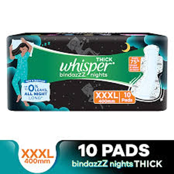 Whisper Bindazzz Nights Sanitary Pads Wider Back Up To 0% Leak Provide All Night Protection XXXL 10pcs
