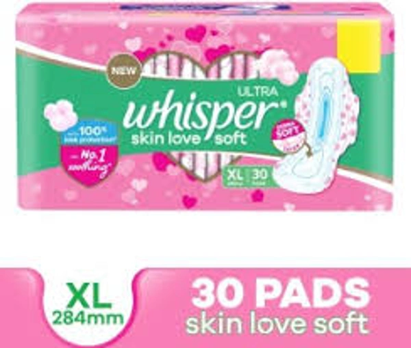 Whisper Ultra Skin Love Soft Sanitary Pads For Women XL Cottony Soft Our 30pcs